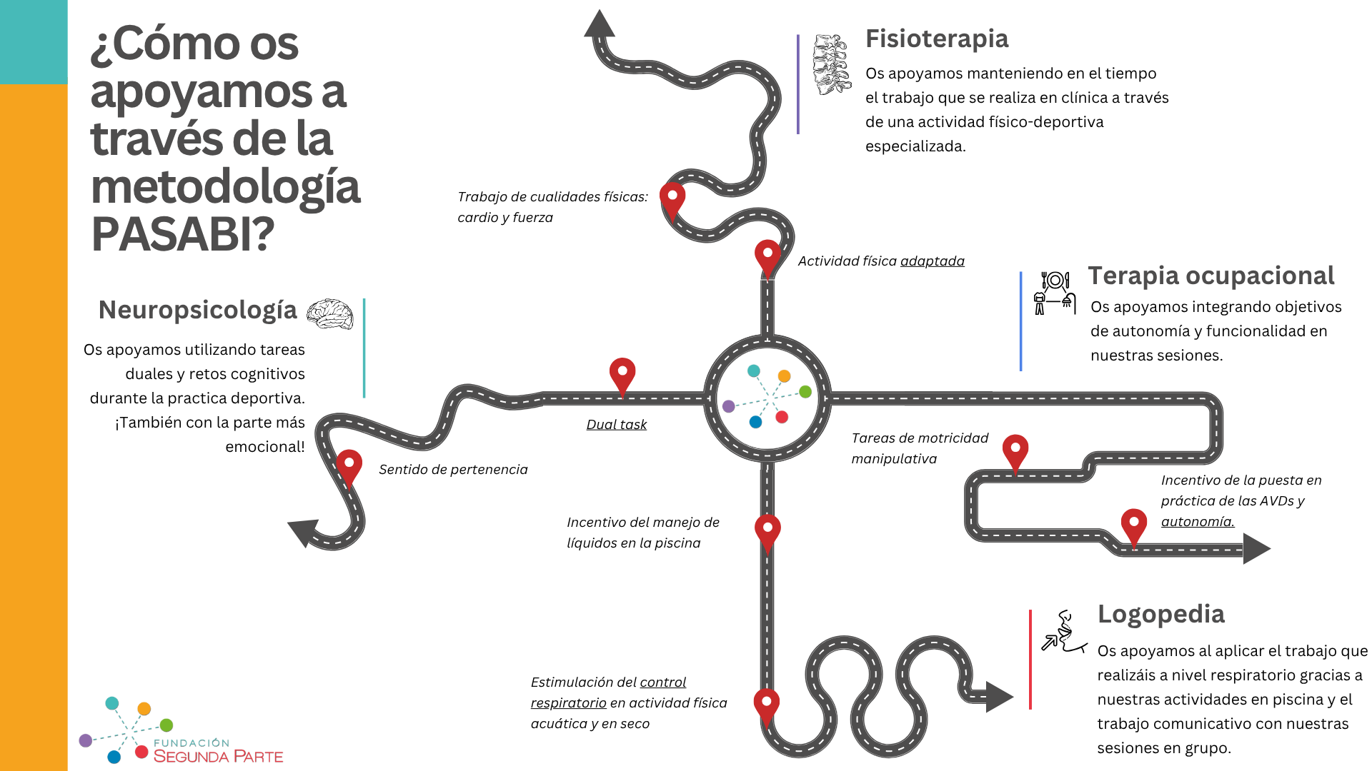 Desde la perspectiva de la actividad física, con nuestra metodología deportiva PASABI, que podéis leer en el apartado de Investigación, estamos alineados en apoyar el trabajo de todos el equipo rehabilitador y ser un complemento útil para mejorar la salud y la calidad de vida de las personas con daño neurológico